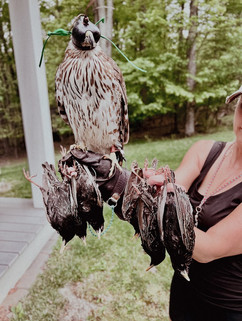 Ally's hallux sheath talon came off again on her 70th head of the season. The same injury that ended her season the year before. In hindsight, I should have cut the talon short, but luckily it's growing back again. Tina battled multiple injuries and sicknesses the entire season. She was everything a passage Cooper's hawk is known for, but we actually made it through the season with her alive and took game consistently. She ended the season with 90 head so 160 head for this year's team. Ally's numbers are a bit skewed because we purposefully tried to take it easier on her this season. She earned it after carrying last year's micro season by herself. For the number crunchers, here's this years stats: